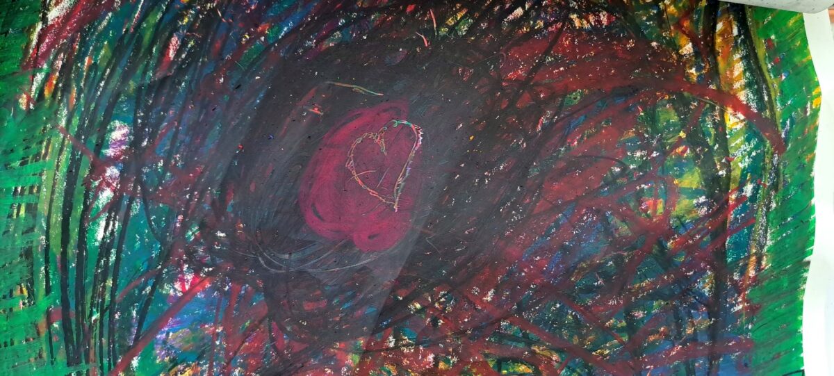 Diese Haltung formt die Räume, die ich anbiete: Räume, in denen das Zeichnen, Malen, und auch schon das Fühlen, Atmen und Schauen Teil eines Selbstwerdungsprozesses sein darf: weil auf all diesen Eben blockiert oder zugelassen werden kann.